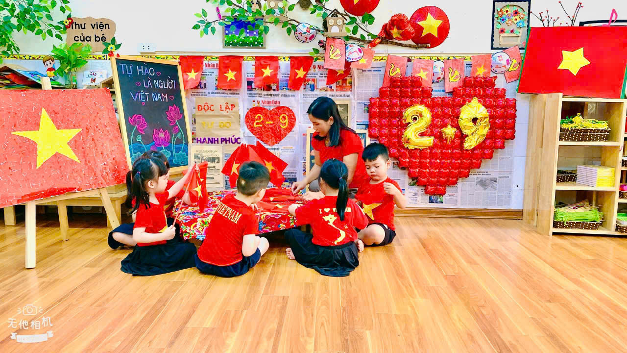 Bên cạnh các hoạt động trang trí, các cô giáo còn lồng ghép nhiều câu chuyện, trò chơi, bài học nhỏ để giúp trẻ hiểu thêm về ý nghĩa lịch sử của ngày Quốc khánh 2/9. Qua đó, các em không chỉ được trải nghiệm niềm vui, sự háo hức khi tham gia hoạt động tập thể, mà còn được bồi dưỡng tình yêu quê hương, lòng biết ơn, niềm tự hào dân tộc ngay từ lứa tuổi mầm non.