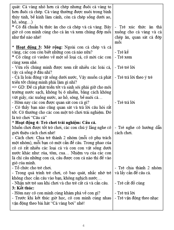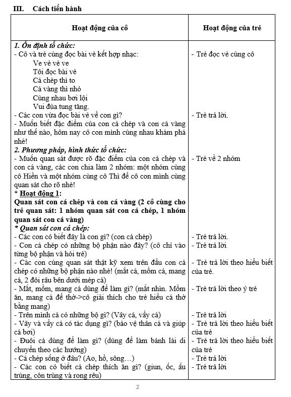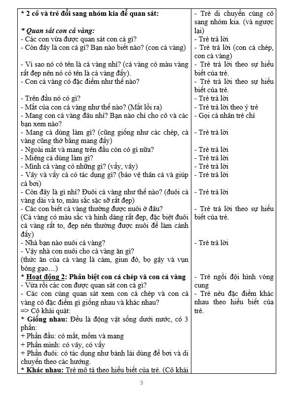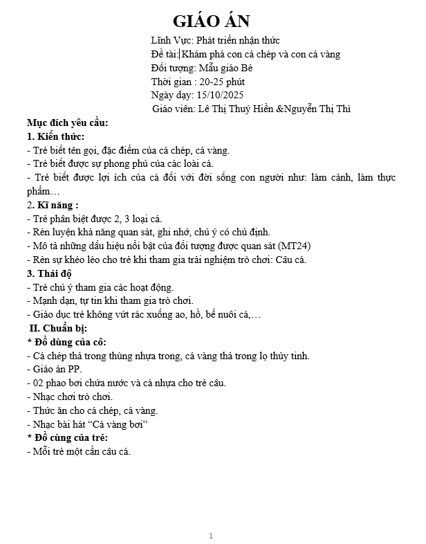 Giáo án khám phá con cá chép và con cá vàng - Lứa tuổi 3-4 tuổi Giáo viên: Lê Thị Thúy Hiền - Nguyễn Thị Thì