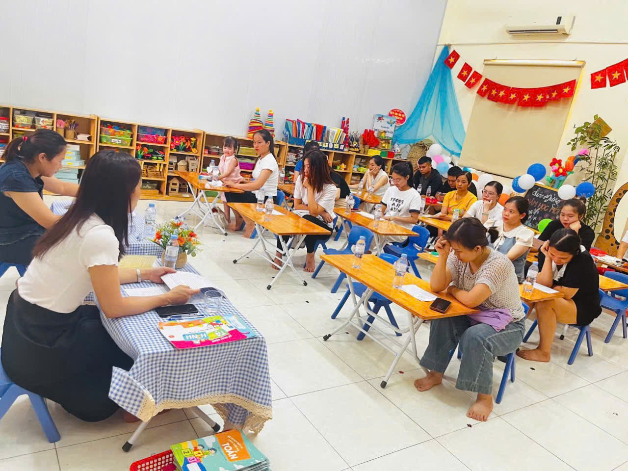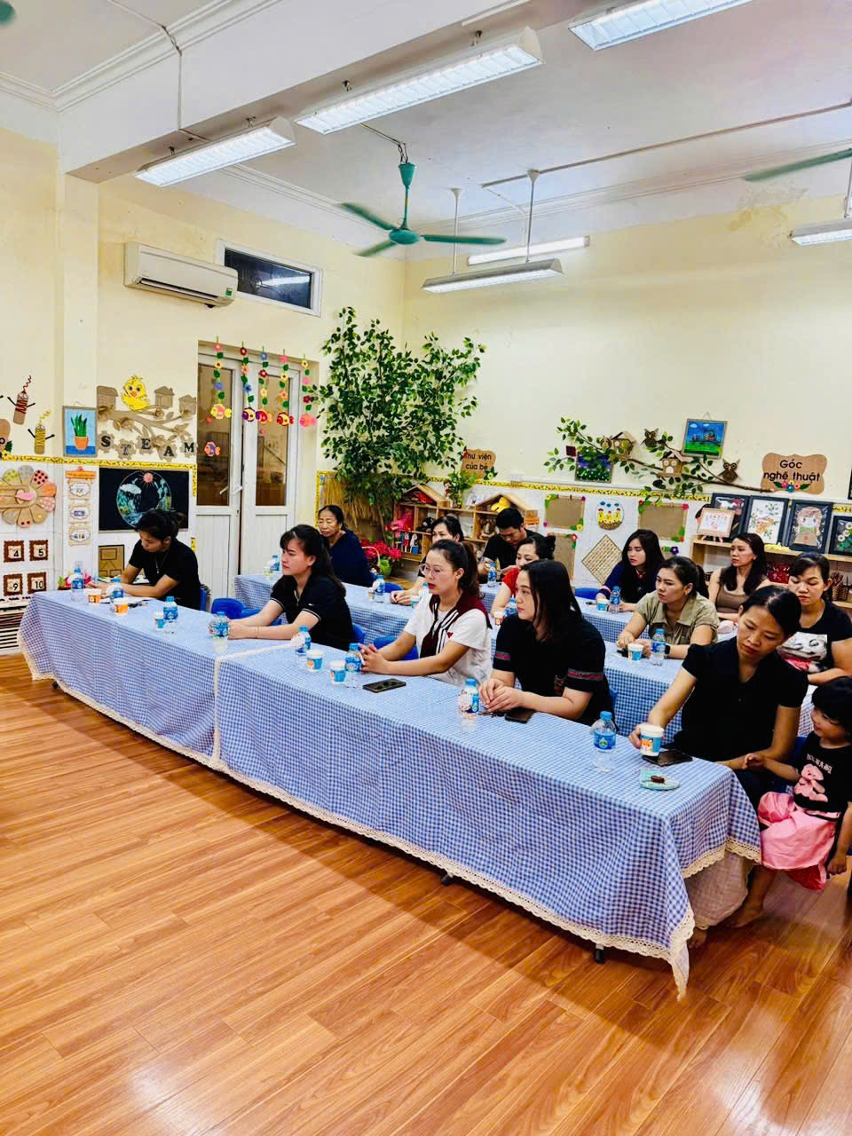 Đặc biệt, các cô đã chia sẻ về phương pháp chăm sóc – giáo dục trẻ theo định hướng “lấy trẻ làm trung tâm”, nhấn mạnh vai trò quan trọng của sự phối hợp chặt chẽ giữa gia đình và nhà trường trong việc nuôi dưỡng, giáo dục trẻ. Buổi họp cũng là dịp để nhà trường lắng nghe ý kiến, những chia sẻ tâm huyết từ phụ huynh, qua đó xây dựng môi trường học tập ngày càng an toàn – thân thiện – hạnh phúc cho các bé.
